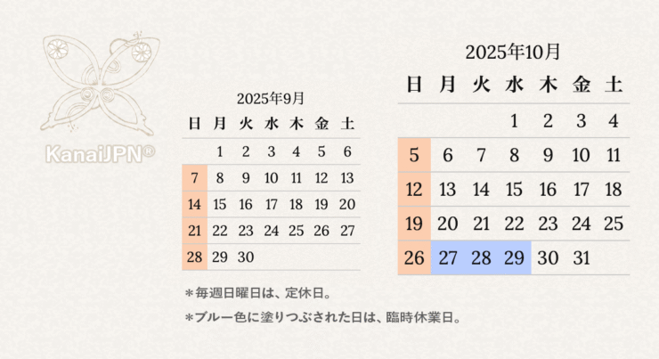 *休業日でもウェブショップでのご注文は可能ですが、受注対応、発送、メール返信などすべての業務はお休みとなります。